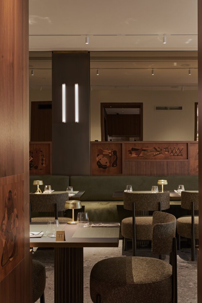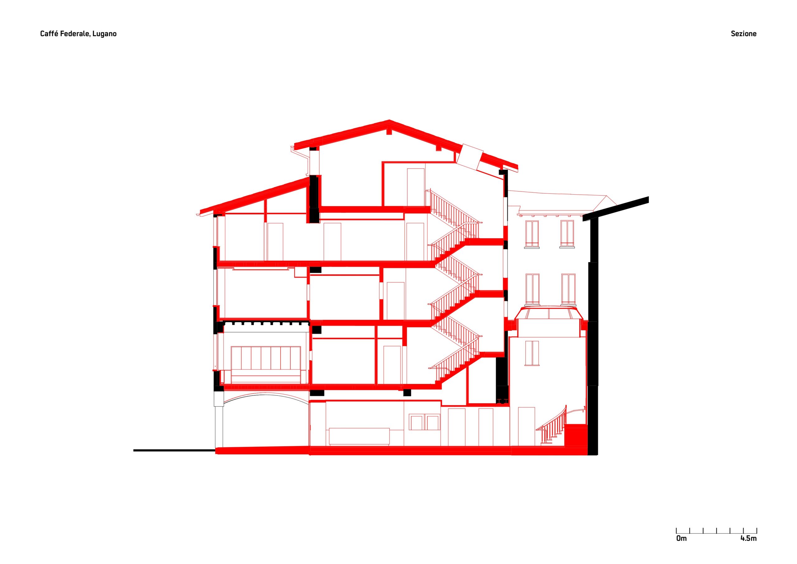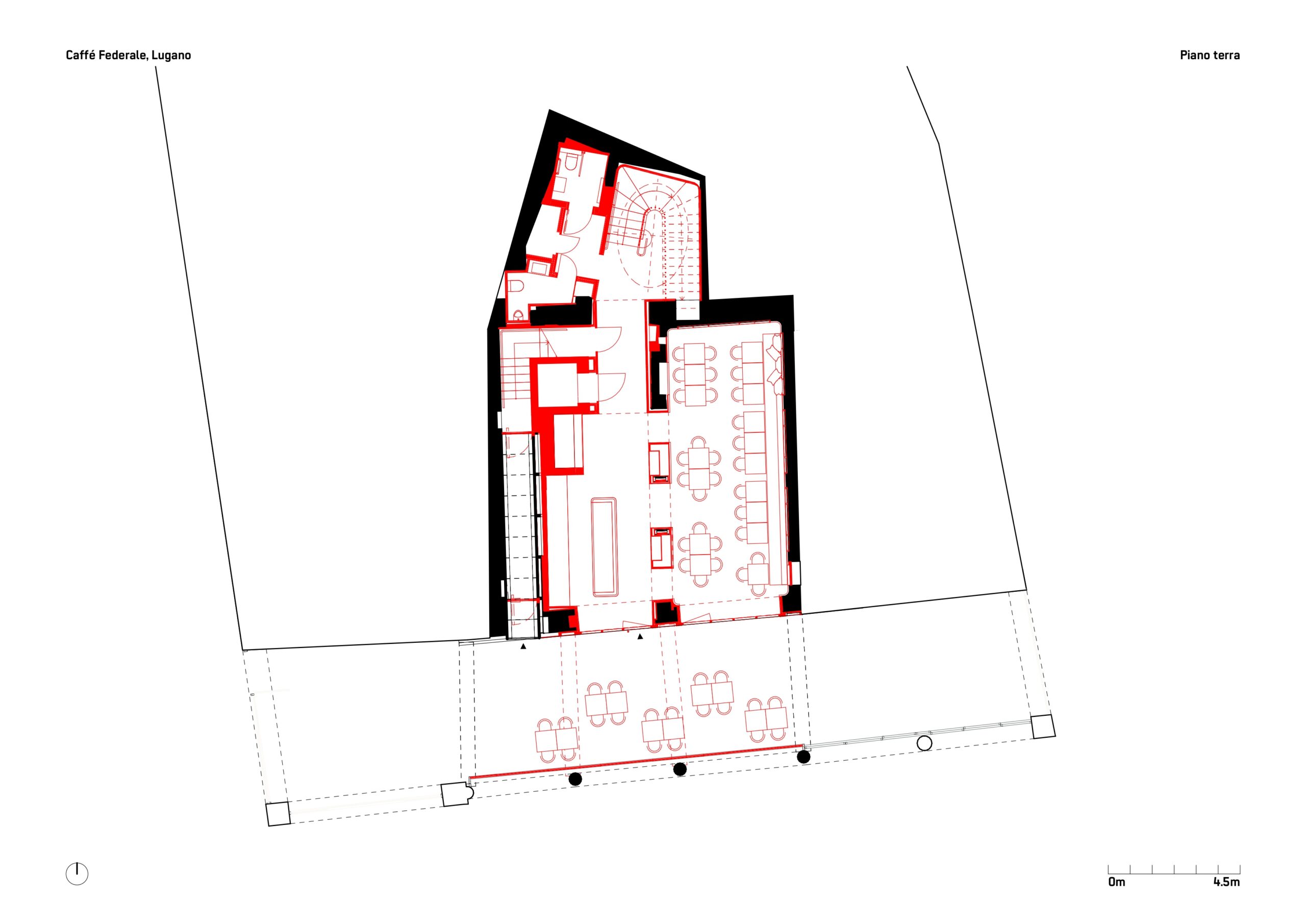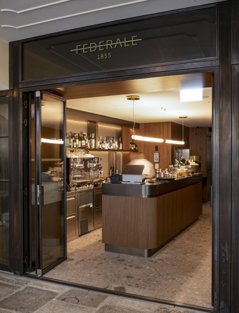 RistrutturazioneIl progetto per il Caffè Federale nasce dal desiderio di restituire all’edificio storico un ruolo centrale nel tessuto urbano di Lugano. L’intervento, frutto di un’attenta operazione di restauro e riqualificazione, valorizza gli elementi architettonici originari integrando soluzioni contemporanee e funzionali. Particolare attenzione è stata riservata al dialogo con lo spazio pubblico esterno della piazza, mentre il progetto d’interni riflette l’identità storica del luogo attraverso l’uso di luce e materiali autentici. Sono inoltre stati mantenuti e valorizzati elementi originali, come opere d’arte, soffitti lignei dipinti e boiserie oltre che interventi architettonici di qualità degli anni Settanta, che testimoniano la stratificazione storica dell’edificio. Un ruolo centrale è affidato al nuovo lucernaio che, con la sua luce naturale, ridisegna gli spazi interni e valorizza la grande scala, trasformandola in fulcro distributivo e percettivo dell’edificio. L’organizzazione interna è stata completamente ripensata per rispondere alle esigenze di comfort e funzionalità: il piano terreno ospita il bar/ristorante, mentre ai piani superiori si distribuiscono due sale ristorante da 25 posti ciascuna, una cucina principale e una cucina di supporto. Il terzo piano accoglie gli spogliatoi per il personale e un ufficio riorganizzato. L’intervento restituisce così all’edificio il suo ruolo di riferimento nella vita sociale e culturale della città.